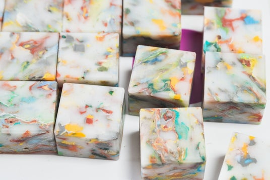 今回、イベントにて来場者記念品として配布されるマグネットは、色とりどりの廃プラスチックを素材にして作られています。美しい白ベースの大理石に、カラフルなチップが混ざり込んだかのような、どこか高級感を漂わせながらも可愛らしくポップな雰囲気を持つ製品として仕上がっています。