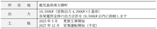 電源開発株式会社(以下「Jパワー」、本社:東京都中央区、代表取締役社長 社長執行役員:菅野 等)の100%出資子会社である株式会社ジェイウインドは、本日、「南大隅ウィンドファーム」(鹿児島県南大隅町)の更新工事を開始しました。