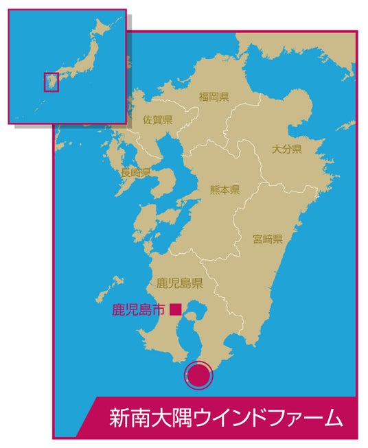 南大隅ウィンドファームは、2003年3月より営業運転を開始し、2023年1月に運転を終了しましたが、今般、国内最大級の風車(単機出力4,300kW)5基に設備更新するものです。本件地点は、Jパワーグループにおける風力発電事業において、5地点目の更新地点となります。