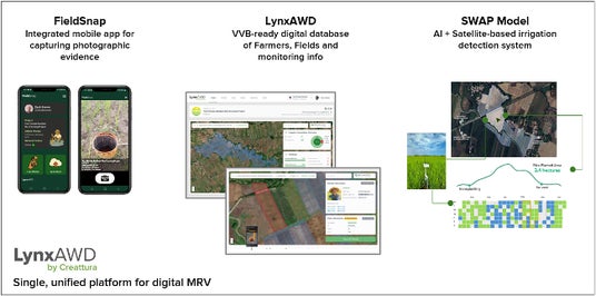 本プロジェクトの推進を可能にしているのが、クレアトゥラが自社開発し特許を取得したデジタルMRVシステム「LynxAWD」です。同システムは、AWDの実施状況を管理するために必要な膨大なデータを統合的に扱うことができるプラットフォームであり、協力農家の基本情報や圃場面積、湛水・排水の管理状況など、プロジェクト運営に不可欠な情報を一元的に管理します。また、現地で撮影された湛水・排水の写真データを、モバイルアプリ「FieldSnap」と連携させることで即時に紐付け、シーズンあたり10万枚を超える画像を自動的に整理する仕組みを実装しています。さらに、衛星データとAIを組み合わせたSWAPモデル(Surface water absence and presence)を用いて、地表が植物に覆われている状況下でも湛水・排水の状態を遠隔で検知できるため、従来は人手で行うほかなかった圃場モニタリング作業を大幅に効率化し、大規模化と精度向上を同時に実現しています。