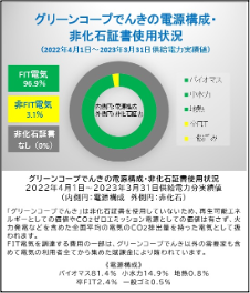加えて、福岡西支部で使用しているのは一般社団法人グリーンコープでんき(以下、「グリーンコープでんき」)の「ゼロエミッションプラン」の電気です。発電時はもちろん「地球温暖化対策推進法」(=特定排出者に自らの温室効果ガス排出量を算定し、国へ報告することを義務付けた法律)の観点からも、二酸化炭素排出ゼロを達成しています(注)。これにより福岡西支部の車両から排出される二酸化炭素は動力源の電気も含め、「完全にゼロ」を実現することになります。