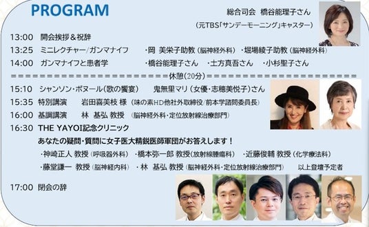 今回の講演会では、ガンマナイフの現状と最先端について、第一線で活躍する女性医師が分かりやすく解説。続いて、実際に治療を受けた患者さんやそのご家族による体験談を通して、治療の現実に迫ります。