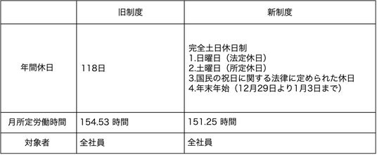 2024年までの年間休日数は118日でしたが、今回の完全土日休日制への移行に伴い、年間休日数が大幅に増加しました。なお、総労働時間の減少に関わらず給与水準は現状維持を約束しており、実質的には全社員に対する賃金アップとなります。