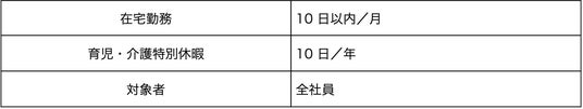 当社は、男女ともに子育てをしながら安心して働ける職場環境の実現を目指して、従業員の育児休業取得を積極的に推進しています。キャリア形成に支障なく育児休業が取得できるよう、評価制度の対象範囲の見直しを行い、新たに在宅勤務(テレワーク)制度を導入することで、育児と仕事の両立をより一層支援できる環境を整えました。