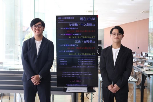 開発者の2人は「学生に役立つものを作りたい」との日頃の考えから、友人たちとの会話にヒントを得て今回のアイデアを発案。大学から駅まで徒歩で10分程度かかるため、"直近の電車が何なのか""電車に間に合うか""現在遅延が発生しているか"といった情報が一目でわかるものがあれば有用なのではと考えた。