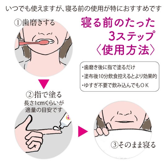 50代以上をターゲットにしつつも、口呼吸による乾燥対策、矯正中やホワイトニング後のケア、安全な材料しか使用していないため、赤ちゃんにも使用可能です。同様に寝たきりの方の口腔環境改善にも有効です。