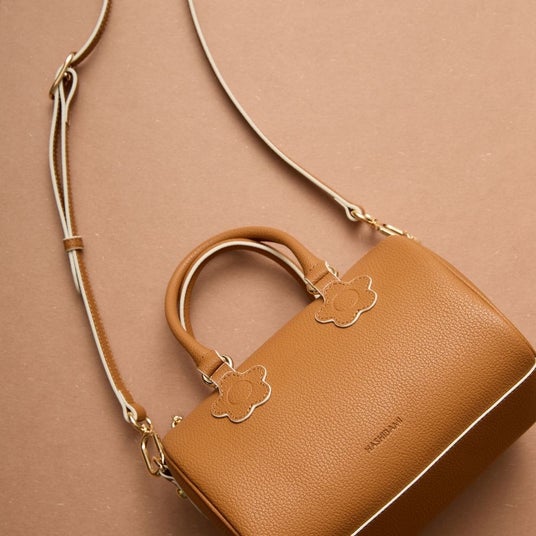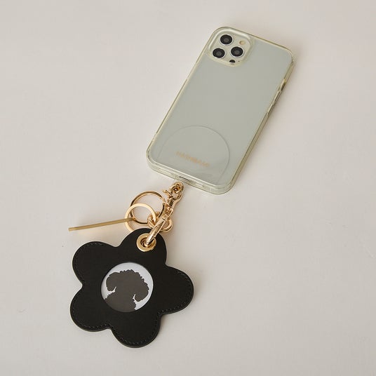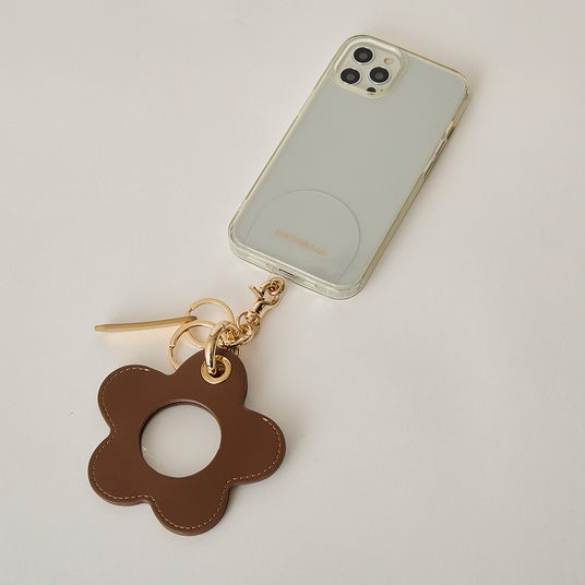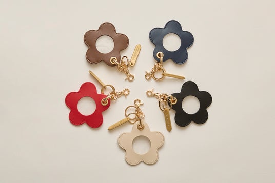 上質な牛床レザーでかたどったフラワーモチーフはどこか懐かしさがありつつ、バッグチャームにもスマホストラップにもできる現代的な要素も忘れずに搭載。