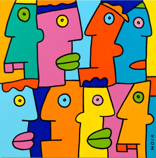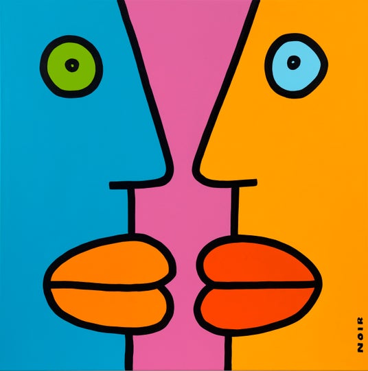 ティエリー・ノワール(1958年生まれ)は、1980年代に西ベルリンで政治的な意識を持って制作を開始したアーティストで、非公式な住居に暮らしながら、当時の抑圧的な状況下で創作を続けていました。彼の代名詞とも言える細長い横顔、平坦な顔、単純化されたフォルムといったビジュアルモチーフは、ベルリンの壁の広大な面に描かれ、抵抗と忍耐の象徴となりました。現在では、ノワールの色彩豊かなイメージは世界中で広く知られており、5つの年代をまたぐキャリアの中で、彼は今もなお創作を続けながら、独自のビジュアル・ユニバースを拡張し続けています。