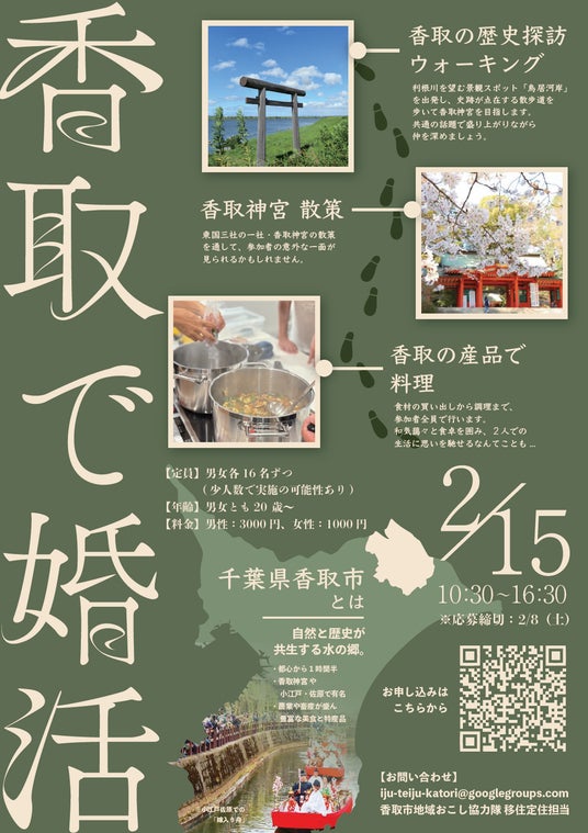 東京から1時間半、千葉県北部に位置する香取市は、豊かな自然に恵まれた歴史ある土地です。香取市への移住定住促進・関係人口創出を図る施策の一環として、同市地域おこし協力隊が中心となって婚活イベントを企画しました!