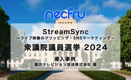 動画配信システムを展開している株式会社ネクフル(本社:東京都中央区 代表取締役:草薙俊介)は、生ライブ配信中の映像をクリップ切抜きするサービス「necfru StreamSync」を、福井テレビジョン放送株式会社様(本社:福井県福井市 代表取締役社長:酒井美樹男 以下:福井テレビという)にご提供し、同社による「第50回 衆議院議員総選挙 開票速報特別番組」(以下:同番組という)のライブ中継で採用されたことをご報告いたします。