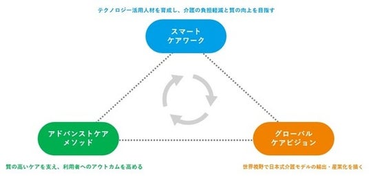1つ目は、介護現場でテクノロジーを活用できる人材の育成、介護の負担軽減と質の向上を目指す「スマートケアワーク」部会。2つ目は、利用者とスタッフ双方の観点から介護の質を可視化し、科学的根拠に基づく介護サービス手法の確立を目指す「アドバンストケアメソッド」部会。3つ目は、世界的視野からの日本式介護モデルの輸出や産業化を検討する「グローバルケアビジョン」部会です。