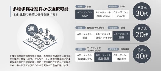 多様な条件から理想の高単価案件に最短アクセス!次世代型の案件探しプラットフォーム