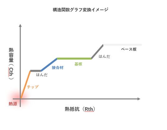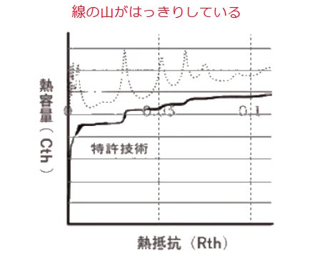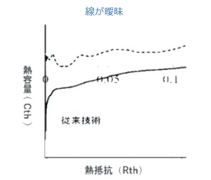 【従来技術】測定した熱抵抗のデータに対して測定ノイズがのる。そのため、構造関数にした際に界面熱抵抗が曖昧になり各部材の傾向が把握しづらい。