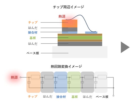 エスペックのパワーサイクル試験装置と、エスペック独自の低ノイズハードウェア設計、新たに採用したノイズ除去アルゴリズムを用いて、各構成部材の熱特性を可視化し、熱による劣化カ所の分析を容易にします。
