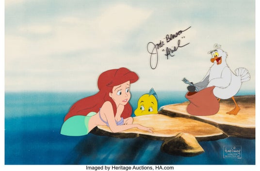 ■『リトル・マーメイド』 「アリエル、フラウンダー、スカットル」 アリエルの声優ジョディ・ベンソンのサイン入りプロダクション・セル(1989年、ウォルト・ディズニー)