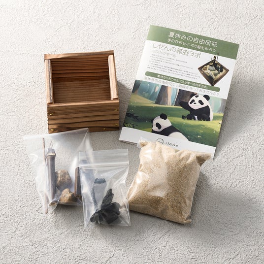 自然とふれあいながら、想像力や観察力を育んでほしいという想いからお子様向けの箱庭を制作いたしました。天然素材を使った環境にやさしい商品で、子どもたちに「持続可能なものづくり」への興味を持ってもらいたいと思っております。天然素材を使った箱庭は、自然のぬくもりや豊かさを感じながら遊べるツールです。夏休みの自由研究にも役立ち、お子さまの創造力や環境への関心を高めるきっかけになると考えております。箱庭はキットになっておりますので、素材を自由に配置して仕上げていただけます。保護者の方と一緒に天然素材の手ざわりや香りを楽しみながら、自然について学び、お楽しみください。