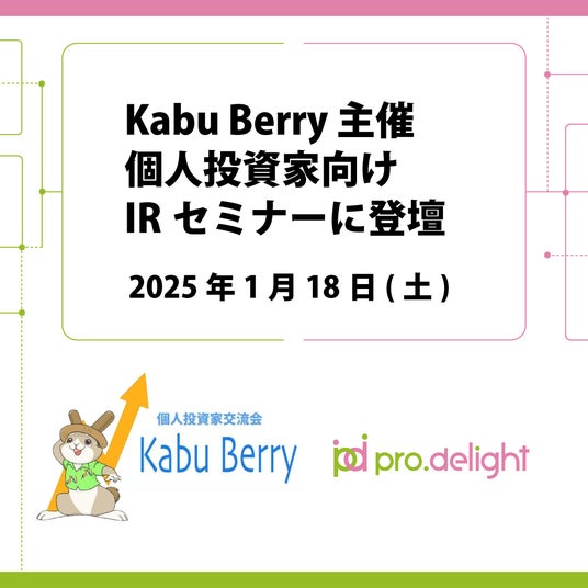 電話のDXを推進する株式会社プロディライト(大阪市中央区:代表取締役社長 小南 秀光、証券コード:5580、以下プロディライト)は2025年1月18日(土)、名古屋で開催されるKabu Berry 主催の個人投資家向けIRセミナーに登壇します。