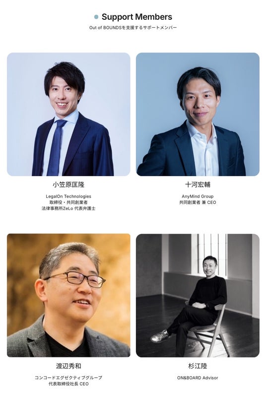 ON&BOARD株式会社(所在地:東京都港区虎ノ門、代表取締役:下平将人、中山航介 以下「当社」)は、6/10(火)から7/10(火)までの期間、創業支援プログラム・第3期「Out of BOUNDS(アウトオブバウンズ)」の参加者の募集を実施いたしますのでお知らせいたします。