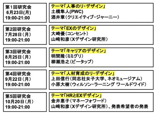 本研究会は、こうした問題意識に基づき、月1度程度のオンライン形式で開催され、各分野の専門家が話題提供を行い、参加者とのディスカッションを通じて議論を深めます。また、研究会の成果として、書籍「HRとEXのデザイン(仮)」の出版を目指しています。