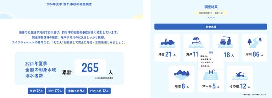 また、今年度は6月1日~8月31日までの3ヶ月間のおぼれ事故の報道実態調査を行い、昨年度のデータとの比較をしながら速報を発表予定です。事故防止の注意喚起として、報道調査の速報値公表を公式サイト等で行います。