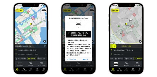 東京都臨海部の任意の地点から、タクシーアプリ「S.RIDE」で自動運転車両を呼び出すことが可能。
