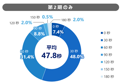 第二期では、1回当たりの媒体への接触時間は平均しておよそ47.8秒でした。先の項目と掛け合わせることで、就業者は1日あたり約186.4秒(3分6秒)媒体と接触していることが判明しました。