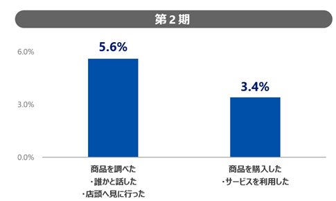 - 行動変容第二期では、広告接触後、累計約9%が「商品を調べる」、「店頭に見に行く」、「購入する」といった行動を起こす結果となりました。