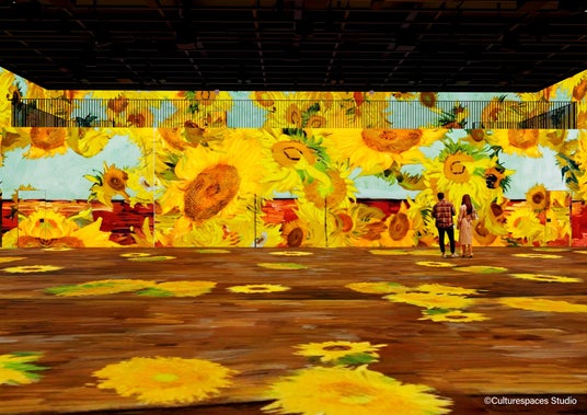さらに会場内には、106台の高精細プロジェクターと63台のスピーカーを設置。空間全体に広がる壮大な映像と立体的に響き渡る音響が融合し、まるでアートの中に入り込んだかのような、全身を包み込む臨場感あふれる没入体験を提供します。