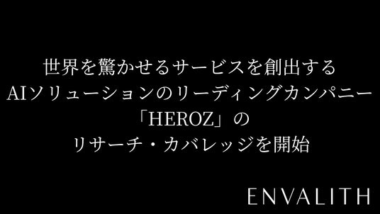 次世代型の株式リサーチ・プラットフォームを展開する株式会社エンヴァリス(本社:東京都渋谷区、代表取締役社長:河井 浩一、以下「当社」)は、HEROZ株式会社(本社:東京都港区、代表取締役: 林 隆弘・高橋 知裕、証券コード:4382、以下「HEROZ」)のリサーチ・カバレッジを開始することをお知らせいたします。