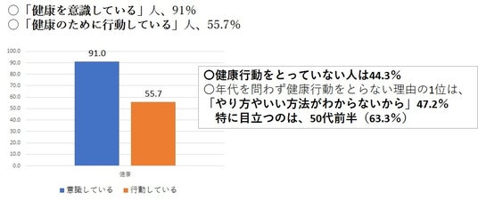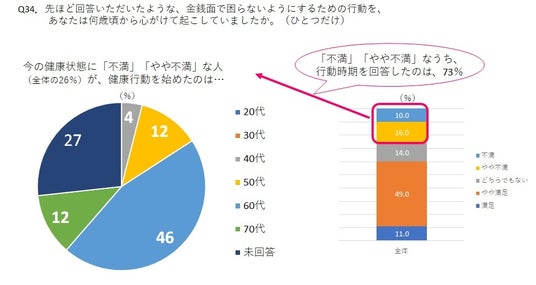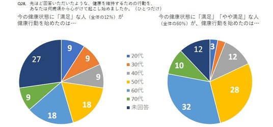 ・今70代で、健康状態に「満足」「やや満足」な人は、「60代」から行動開始が最多、32%