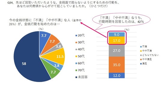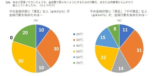 ・今70代で、金銭状態に「満足」「やや満足」な人は、「30代」から行動開始が最多。