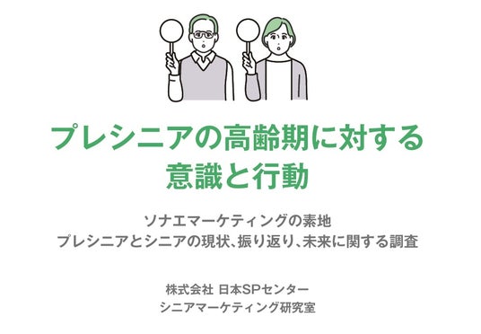 株式会社日本SPセンター(本社:東京都渋谷区/社長:渡邉一男)「シニアマーケティング研究室」では、2023年10月、45歳以上59歳以下のプレシニア男女に、シニア期に関する意識と行動についての調査を行いました。加えて70歳以上79歳以下のシニア男女に現状と振り返り、未来について調査を実施しました。