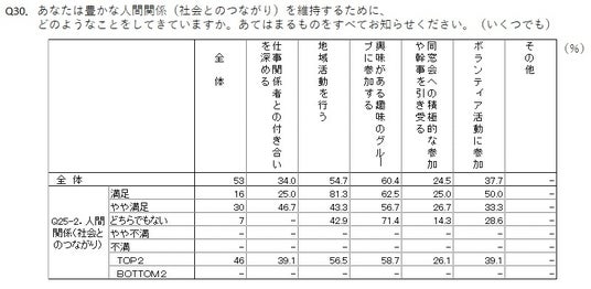 ・50代前半は人間関係(社会活動)づくりに、若干、消極的に見受けられる。