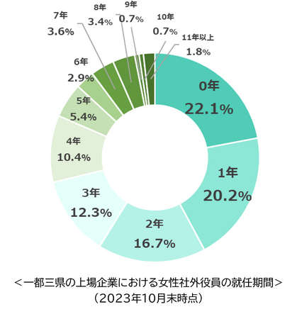 一都三県(東京都・神奈川県・埼玉県・千葉県)の上場企業における女性社外役員は2022年10月末時点※1は