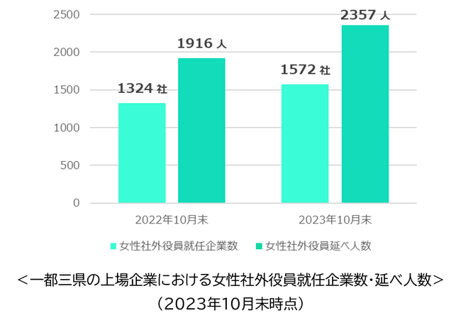 女性社外役員は約1年で441人増の2,357人、昨対比で1.2倍に。