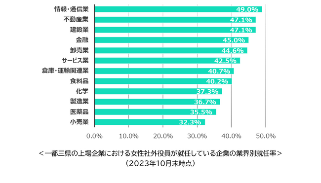 最も女性社外役員の就任率が高いのは情報・通信業で2社に1社が女性社外役員を登用