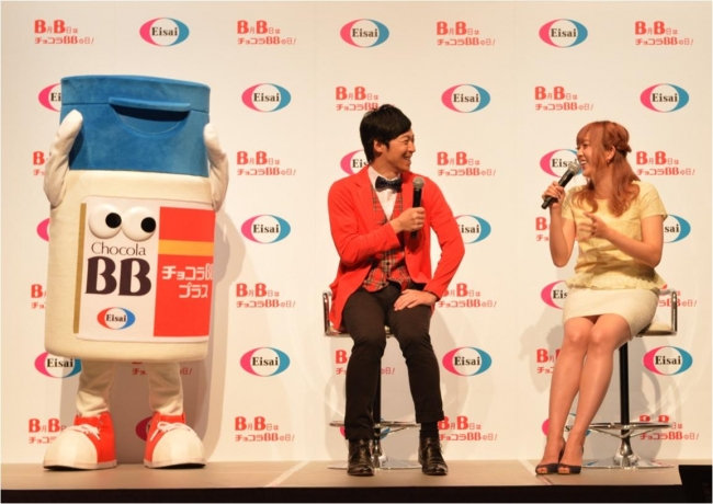 エーザイ株式会社 コンシューマーhhc事業部(東京都)は、8月8日の「チョコラ BBの日」制定1周年を記念して、ゲストにタレントの菊地亜美さん、東貴博さんをお迎えし、2016年8月8日(月)、記念イベントを実施いたしました。