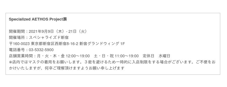 "東京"はスペシャライズド新宿にて、出品されるアート作品を実際に観る体験価値も共有いただけるスペースをご用意いたします。