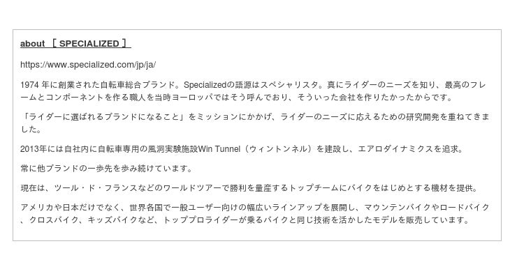 SPECIALIZED の取り組み