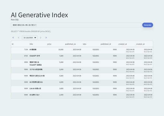 「List AI」を対象サービスに組み込むと、プログラミングの知識がないメンバーやDBに直接アクセスできないメンバーでも、直感的にデータベースのデータ出力ができます。例えば、「登録者の総数を教えて」「ベストセラーの商品を教えて」といった日本語の指示で、データベースから必要な情報を取得できます。プロジェクトのスキーマ情報をAIに教えてあげることで、このような方法を実現しています。