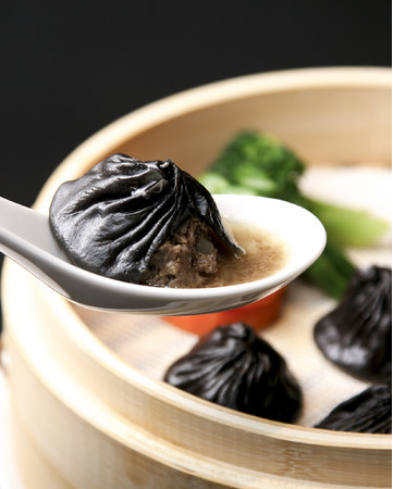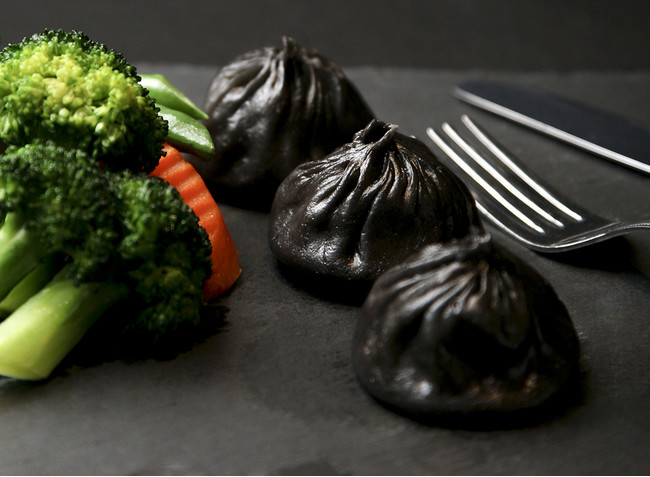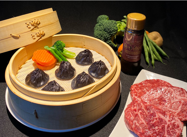 インパクトと高級感のある黒い皮で、矢澤ミートのハンバーグで使用している黒毛和牛小籠包を包みました。