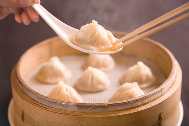 特長はなんといってもその旨みスープと餡を包む皮生地。蒸し上がった小籠包は中が透けて見えるほど『超薄皮』です。
