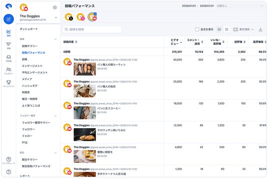 今回のアップデートにより、X(Twitter)、Instagram、Facebook、YouTubeの投稿状況をSocialDogひとつで確認できるようになります。SNSごとにツールを使い分ける手間がなくなり、日々の運用がよりスムーズになります。