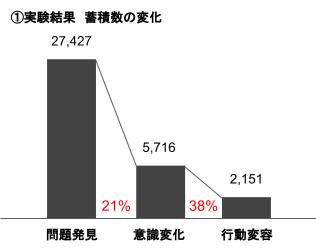 問題発見から意識変化への割合:21%/意識変化から行動変容への割合:38%。問題発見から意識変化の方が、割合が低い結果となった。