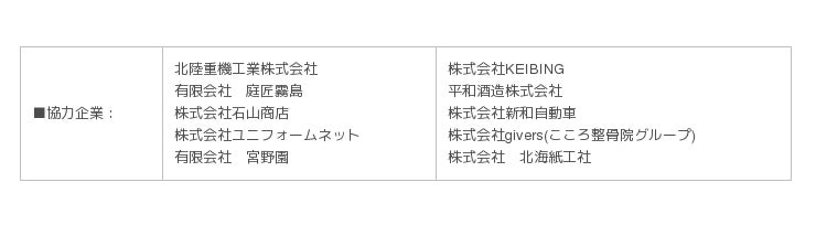 「NN CHUSHOU UNIFORMS」協力企業一覧