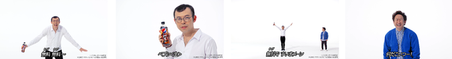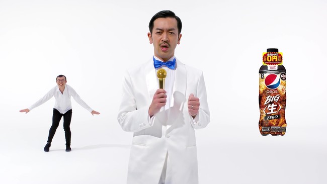 WebCMではそれぞれが持ちネタをキャンペーンに合わせて「タダタッダッタダッだ~♪」などと替え歌を披露しますが、「ペプシBIG〈生〉タダ!?の歌(入れ替わり)篇」では、なんと、ムーディ勝山さんとジョイマン高木さんが完全に入れ替わった初のネタコラボを披露。途中、ムーディ勝山さんのラップにジョイマン高木さんが笑いを我慢しきれないシーンもありますが、最後は池谷さんからおなじみの「なんだこいつら~」と二人にツッコミが入ります。