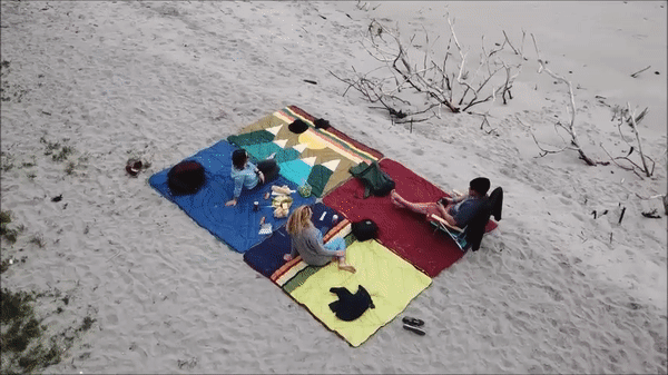 複数のPillow Blanketを繋げて合体させると大きなレジャーシートへ変身!