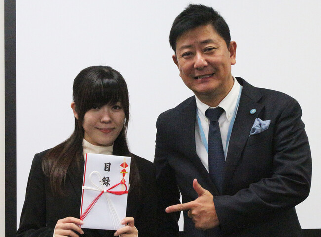 左:優勝者 田中 萌子 右:寺本社長