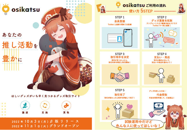 オタク女子自身の推し活で生まれた発想。グッズの譲渡・交換・買取が安心・安全にできる会員制のサイトです。