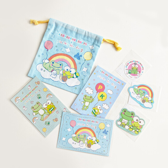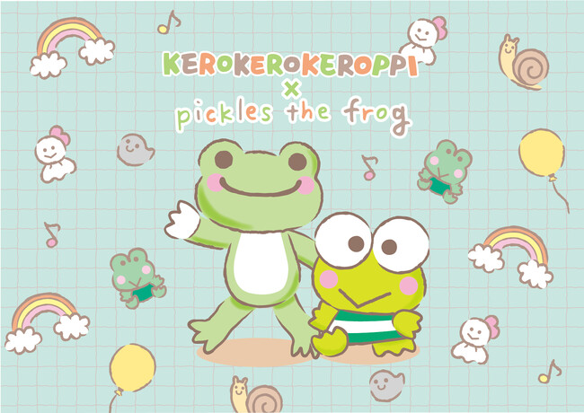 けろけろけろっぴは2023年で35周年、かえるのピクルスは2024年で30周年をむかえます。おたがいの周年をお祝いする形で実現したこのコラボ、ぬいぐるみや雑貨などたくさんのラインナップを展開します。